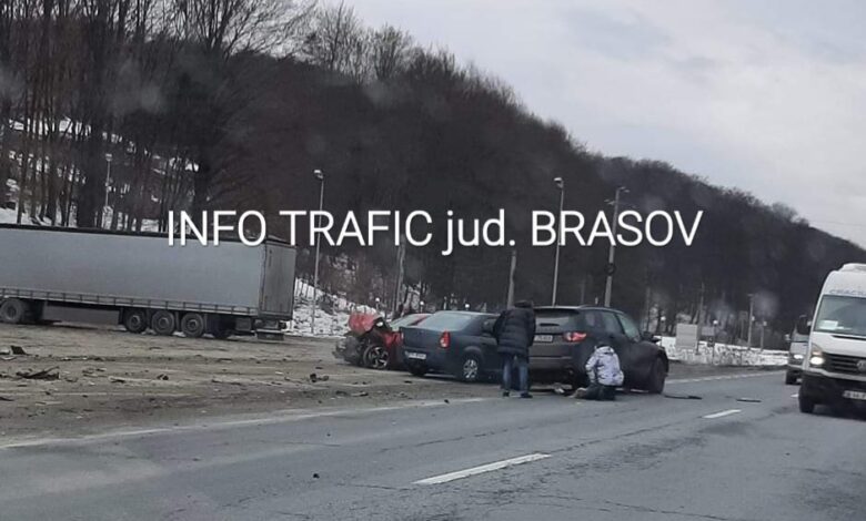 Centrul INFOTRAFIC din Inspectoratul General al Poliției Române informează că pe DN 1, la kilometrul 207+200 de metri, în zona localității Perșani, județul Brașov, s-a produs un accident rutier în care conducătorul unui autoturism a pierdut controlul volanului și a lovit alte 2 autovehicule, parcate. În urma impactului au rezultat 4 victime, cu diferite leziuni, pentru care a fost solicitat și un elicopter SMURD. Circulația rutieră este oprită pe ambele sensuri de mers, valorile de trafic fiind în creștere.