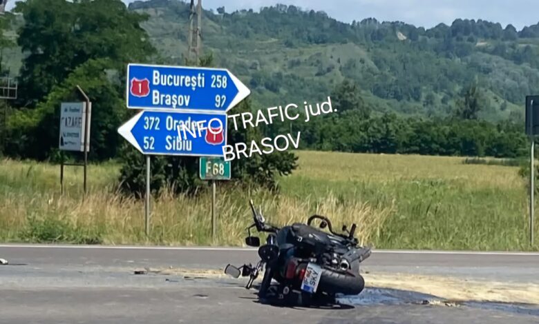 Accident între un autoturism și o motocicletă, astăzi, pe DN 1, în județul Brașov! Evenimentul rutier a avut loc cu puțin înainte de orele 12.00, pe DN 1 Brașov – Sibiu, pe raza localității Ucea, județul Brașov.