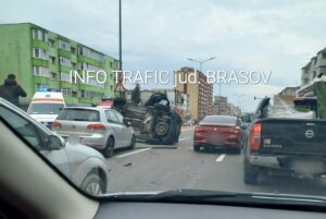 „Cu puțin timp în urmă a avut loc un accident de circulație, în municipiul Brașov, la intersecția străzilor Jupiter cu Calea București.