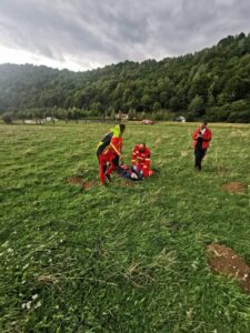 Având în vedere starea de șoc și epuizarea fizicā a însoțitorului victimei, s-a luat decizia  ca acesta sā fie extras tot pe cale aero.