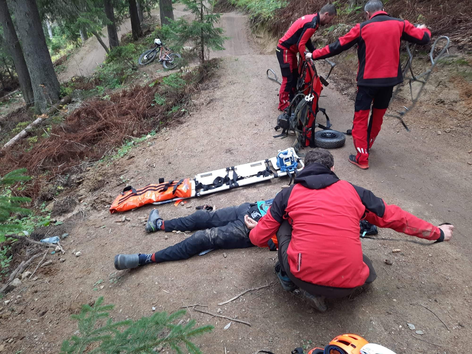 „Persoană accidentată pe traseul de ciclism albastru. Aceasta a suferit un traumatism cranio-cerebral, precum și traumatisme de membru superior și inferior. După ce i-a fost acordat primul ajutor, a fost imobilizat (n.r. biciclistul) pe targă, în vederea transportului către stațiune, de unde a fost preluat de un echipaj SMURD. Ciclistul în cauză era echipat adecvat unei astfel de activități, dispunând de tot echipamentul de siguranță necesar”, au precizat salvamontiștii din Poiana Brașov.