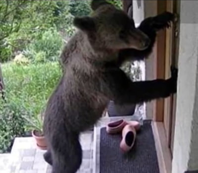 „Azi am a avut o nouă vizită… Ursul a încercat (chiar și) ușa de intrare… Am apelat 112. Într-adevăr au ajuns “prompt” (cu jandarmi, cu vânător, cu veterinar, etc) la 20 de minute după apelare. Evident, ursul plecase, nici urmă de el”, a spus proprietarul casei, citat de realitatea.net.