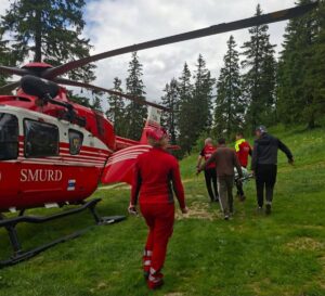 Dată fiind starea gravă în care se afla persoana, salvamontiștii au chemat în sprijin elicopterul SMURD.