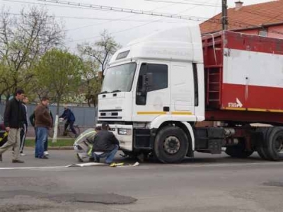 Femeia, în vârstă de 45 de ani, a fost acroșată pe un bulevard intens circulat, ea decedând pe loc. Femeia a ieșit cu bicicleta de pe strada Traian și a intrat pe Bulevardul 25 Octombrie, fără să se asigure, fiind acroșată de un TIR.