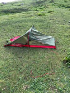 O familie aflată cu cortul pe Valea Mălăiești a fost „vizitată” de urs, azi-noapte. Animalul sălbatic a fost atras de mirosul mâncării turiștilor, care au depozitat-o necorespunzător.