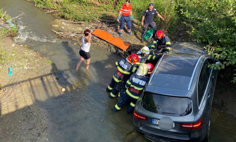 O șoferiță a ajuns cu mașina în râu, în județul Brașov