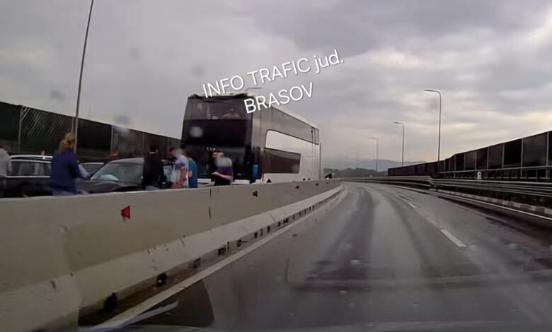 „La acest moment traficul rutier se desfășoară cu restricții, pe Varianta Ocolitoare a municipiului Brașov – VO1K, în zona km 15, pe sensul de mers Sibiu – București ca urmare a producerii unui accident rutier, în care au fost implicate patru autovehicule.