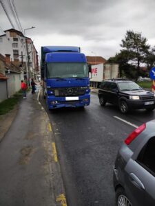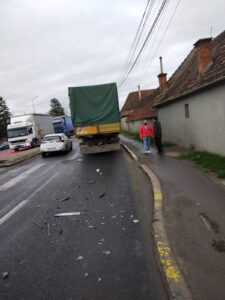 „Cu puțin timp urmă a avut loc un accident rutier pe strada Făgărașului din orașul Ghimbav, județul Brașov, în care au fost implicate un tir și un autoturism, ce se deplasau pe sensul de mers dinspre Sibiu spre Brașov.