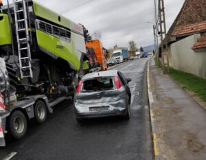Accident între un TIR și un autoturism, la Ghimbav, în județul Brașov.