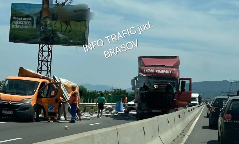 „La acest moment (n.r. ora 13.30) , traficul rutier este blocat pe DN 1, între localitățile Ghimbav și Codlea, din județul Brașov, ca urmare a producerii unui accident de circulație.