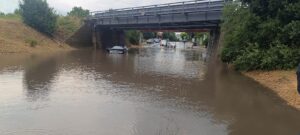 „Inundație în zona podului de pe strada 13 Decembrie, unde un autoturism a rămas blocat în apă”, a mai informat purtătorul de cuvânt al Inspectoratului pentru Situații de Urgență Brașov, lt. col. Ciprian Sfreja.