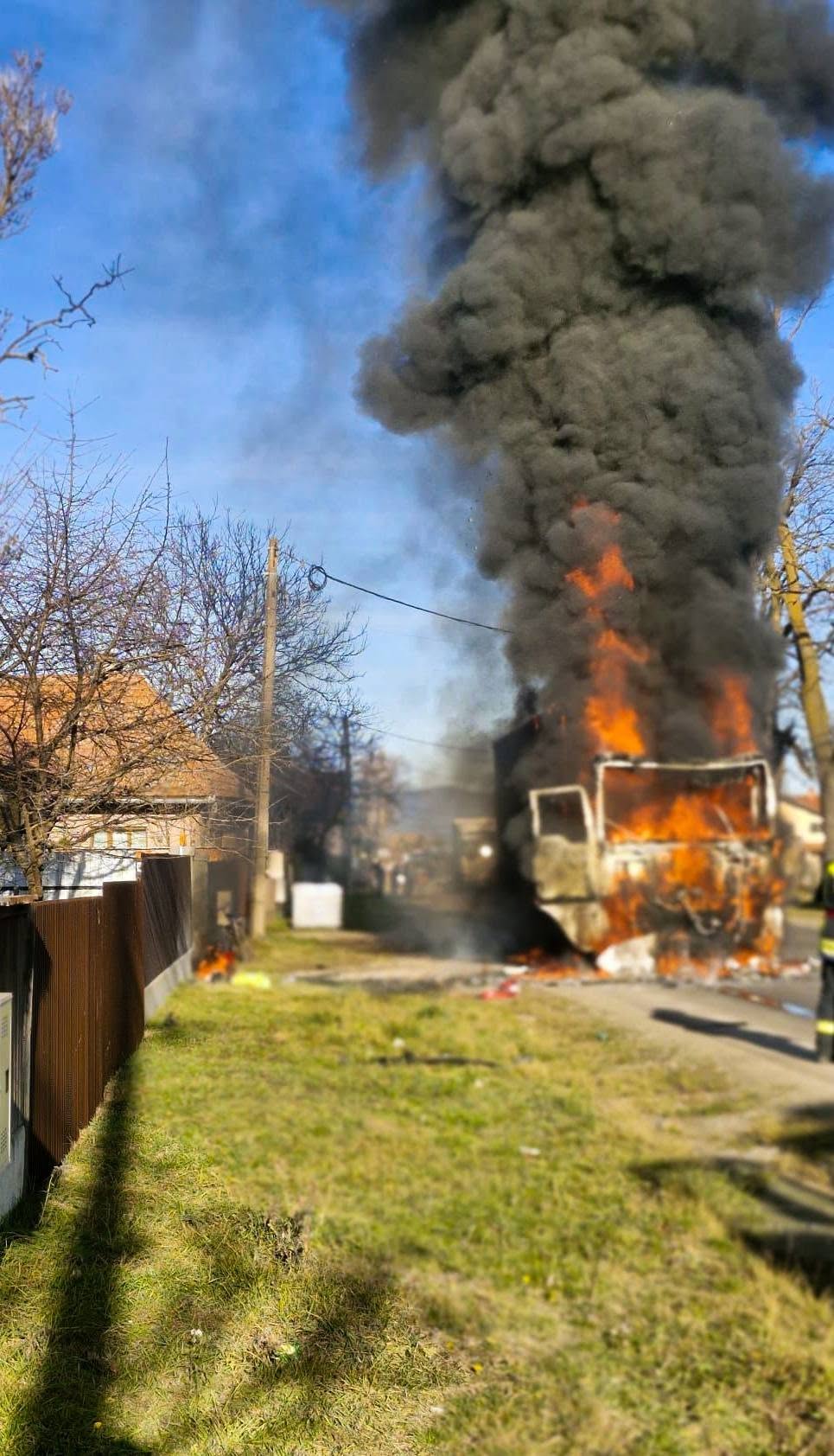În urma incendiului, cabina TIR-ului a ars complet, împreună cu 10 baloți de carton, iar semiremorca a fost degradată, fiind afectați și 42 de baloți de carton reciclabil.