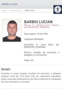 Violator dat în urmărire! Un bărbat condamnat definitiv pentru viol a fost introdus pe lista românilor dați în urmărire. Barboi Lucian s-a născut în 16 aprilie 1990, în Drobeta-Turnu Severin, jud. Mehedinți.