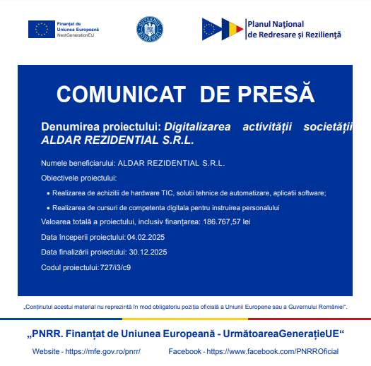 Denumirea proiectului: Digitalizarea activității societații ALDAR REZIDENȚIAL S.R.L.