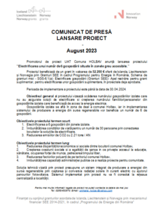 COMUNICAT DE PRESĂ: LANSARE PROIECT – August 2023