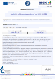Comunicat lansare proiect „Achiziție echipamente moderne” cod SMIS 321535