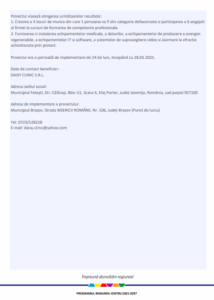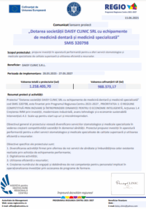 Comunicat lansare proiect „Dotarea societății DAISY CLINIC SRL cu echipamente de medicină dentară și medicină specializată”