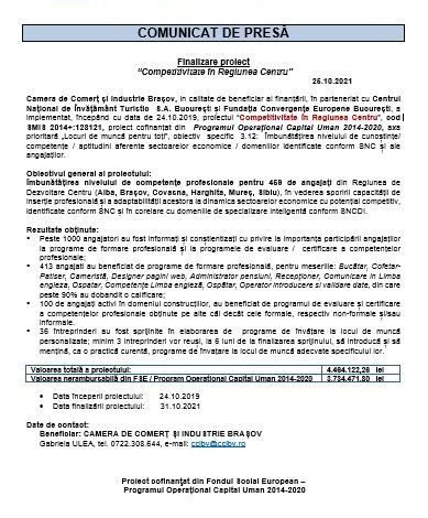Finalizare proiect „Competitivitate în Regiunea Centru”