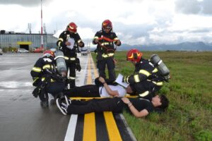 Inspectoratul pentru Situații de Urgență Brașov a postat imagini de la exercițiul efectuat astăzi la Aeroportul Brașov.