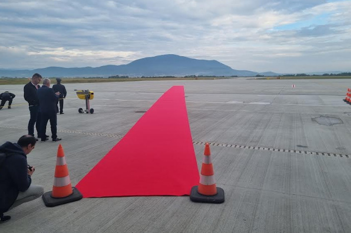 Oficialitățile de la București sunt așteptate la Aeroportul Brașov cu covorul roșu, așa cum se observă din imaginea de mai jos.