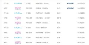 Conform datelor de pe site-ul Aeroportului Internațional Brașov Ghimbav (AIBG – GHV), este ultima săptămână în care sunt opt destinații pe care operează zboruri regulate Fly Lili și Wizz Air.