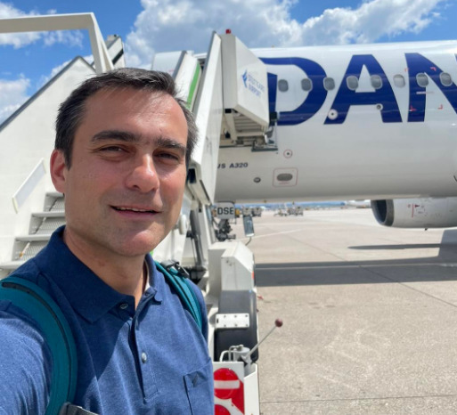 Edilul tocmai s-a îmbarcat de la Stuttgart într-o cursă Dan Air cu sosire la Aeroportul Brașov, precizând: „Să fie-ntr-un ceas bun! Zboruri line, Brașov!”. El a relatat că în avion este multă bucurie pentru primul zbor internațional ce va ateriza la Brașov și „mulți brașoveni sunt mândri, cum e normal să fim cu toții în aceste zile”.
