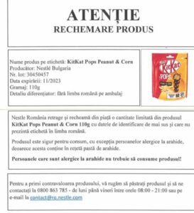 Nestle România retrage și recheamă din piață o cantitate limitată din produsul
