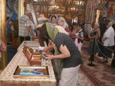 La biserică așteptau mulți credincioși, pelerinii fiind veniți din toată țara, dar jandarmii, care aranjaseră garduri, pentru a forma două culoare în curtea bisericii, nu au fost nevoiți să facă ordine. Mulți credincioși au venit, sperând la minuni, unii dintre ei având neapărat nevoie de o vindecare sau un ajutorul divin, pentru a depăși impasul în care se află. „Doamne, ajută-ne pe noi, păcătoșii!”, a rostit necontenit o credincioasă, cu ochii în lacrimi. „Pentru sănătate și pentru ajutor de la Dumnezeu am venit. La altcineva nu mai avem speranță. Eu sunt șomeră, soțul e pensionat de boală, avem doi copii de crescut. Sunt convinsă că ne vor ajuta Maica Domnului și sfinții”, ne-a spus Valerica Cristescu. Printre pelerini s-au numărat și părinți cu copii mici în brațe. Au stat răbdători la coadă mulți tineri, dar și vârstnici. Ca de obicei, printre pelerini au fost și destui oameni mânați numai de un soi de pietism, de superstiția că „este bine” să faci acest ritual de atingere a moaștelor și să te îmbulzești la apă sfințită sau la busuioc din buchetul preotului.