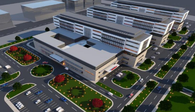 - clădirea principală a spitalului (suprafață desfășurată de circa 141.000 m.p.);