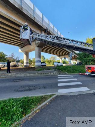 „Un pui de pisică a ajuns într-o situație imposibilă după ce, probabil speriat de traficul aglomerat și zgomotul mașinilor, a căzut de pe partea carosabilă a podului din Tractorul, într-un șanț accesibil doar cu ajutorul autoscării pompierilor. Oamenii care au trecut prin zonă l-au auzit pe micuț mieunând disperat și au sunat la 112, iar pompierii i-au chemat pe colegii noștri în ajutor. Până la urmă, puiul de pisică a ajuns în cabinetul veterinarului și acum se simte un pic mai bine. Este însă foarte speriat, deshidratat și slăbit”, au precizat cei de la AMP.