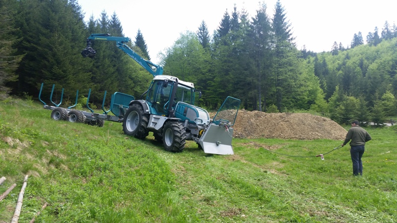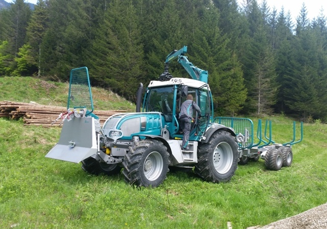 Cel mai impresionant, dar și cel mai scump, este sistemul Pfanzelt – „tractor cu braţ hidraulic”, complet echipat forestier: scut spate cu graifer, troliu dublu fix cu cabluri, macara montata pe tractor, trailer transport sortimente subţiri rezultate din lucrarile de îngrijire ale arboretelor, lamă deszăpezire, anvelope și jante forestiere, lanţuri de tracţiune.