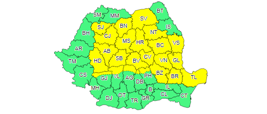 ANM a emis un nou cod galben de instabilitate atmosferică, în care este inclus și județul nostru, valabil pentru astăzi, 31 august, între orele 10.00 și 22.00.