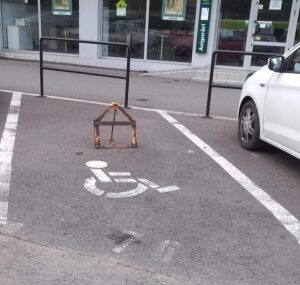 „Din minunile Brașovului și despre vigilența cumetrilor locali! Undeva pe Terra, pe Calea București! Cum este posibil să blochezi locurile de parcare destinate persoanelor cu dizabilități? …s-au scos la licitație…să știm măcar! Asta se întreabă o persoană cu dizabilități!”, au scris reprezentanții ASUM, postând și imagini cu acel loc de parcare.