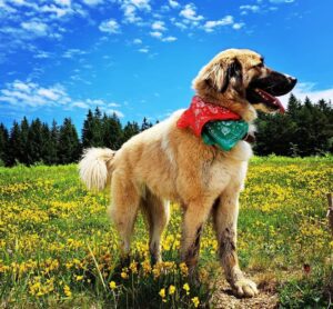 Cățelușa din poză s-a curentat într-un gard electric și a fugit speriată pe drumul spre schitul Colții Chiliilor, din Zărnești. Bella are lesă și zgardă roșie la gât și aceleași bandane ca în fotografie.