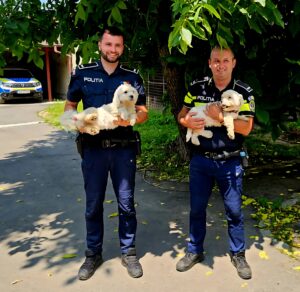 Doi cățeluși abandonați au fost adoptați de un polițist de la IPJ Brașov căruia i-au intrat rapid la suflet. Proprietarul inițial a fost amendat pentru abandon.
