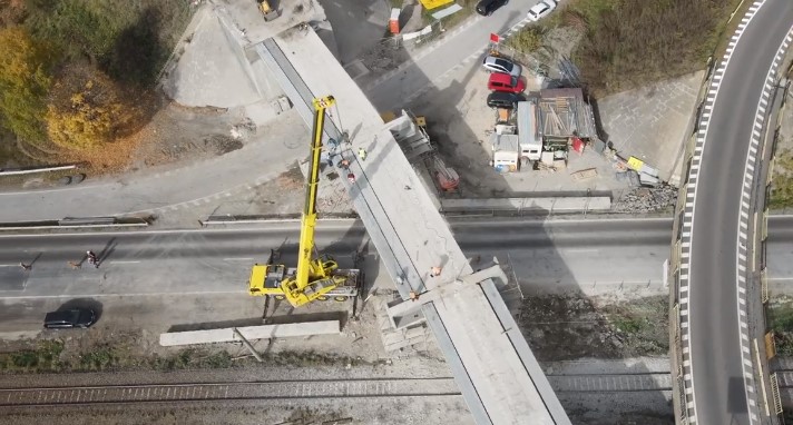Grinzi noi pe pasajul de pe DN10. Lucrările la pasajul dintre localităţile Hărman şi Prejmer avansează. Reprezentanţii constructorului au anunţat că a început montarea noilor grinzi (video).