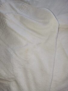 –        Saltele pătate, lenjerie de pat  foarte uzată, prosoape uzate și pătate,
