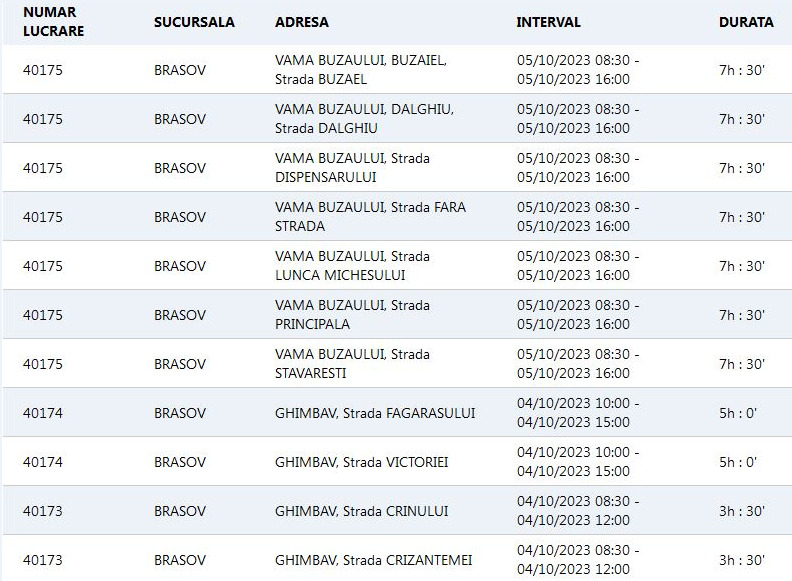 Întreruperi de curent în mai multe localități din județul Brașov,