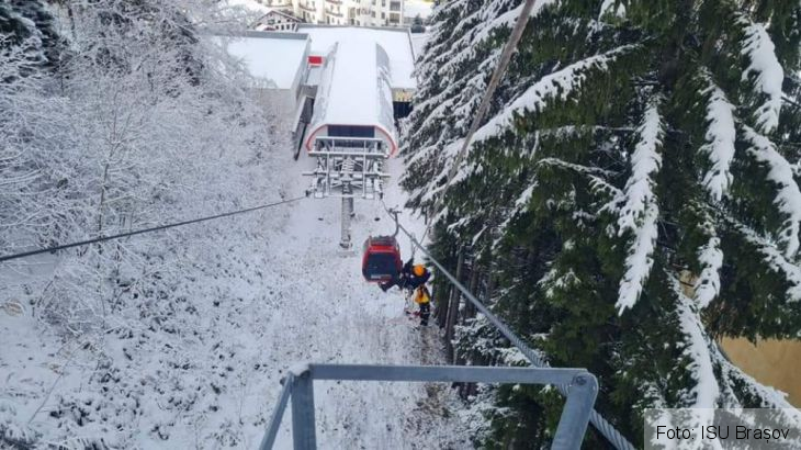 Pompierii brașoveni desfășoară, în această perioadă, exerciții de salvare a unor persoane aflate la înăltime, pe domeniul schiabil din Poiana Brașov.