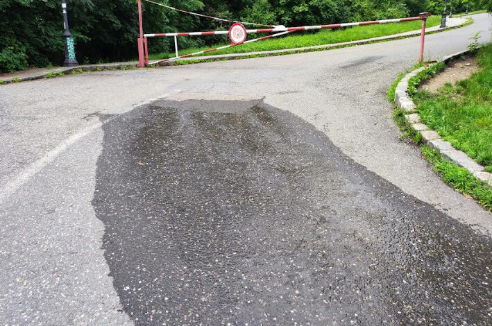 De vreo două zile, pe drumul ce duce către Cetățuia Brașovului a apărut un pârâiaș. Aproape de obiectivul intrat de curând în administrarea Primăriei se observă și sursa – un izvor sub asfalt. Probabil s-a fisurat vreo conductă, iar Compania Apa n-a fost înștiințată de această defecțiune.