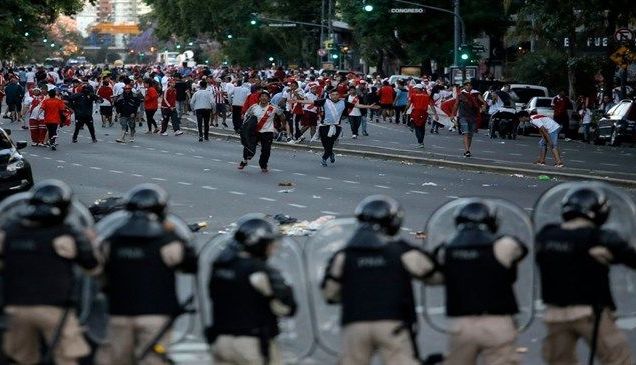 Primarul oraşului Buenos Aires i-a acuzat pe barra brava (suporteri huligani) ai River Plate, pe care i-a numit „mafioţi”, că ar fi responsabili de atacarea autocarului echipei Boca Juniors, înainte de returul finalei Copei Libertadores de sâmbătă, potrivit News.ro. Meciul, prevăzut iniţial sâmbătă, a fost amânat mai întâi 24 de ore, iar apoi pentru altă dată. Mai mulţi jucători de la Boca au fost răniţi, după ce geamurile autocarului au fost sparte în momentul deplasării spre stadionul Monumental din Buenos Aires. Potrivit lui Horacio Rodriguez Larreta, violenţele au izbucnit după o răzbunare provenită în urma unei percheziţii a poliţiei la casa liderului barra brava de la River. Zece milioane de pesos (229 000 euro) şi 300 de bilete pentru finală au fost confiscate în timpul percheziţiei.