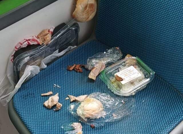 O poză cât o mie de cuvinte a fost publicată astăzi pe grupul de Facebook RATBV – Grupul Călătorilor, arătând lipsa de respect a unora dintre călători… În imagine se vede un scaun murdărit de resturi de mâncare.