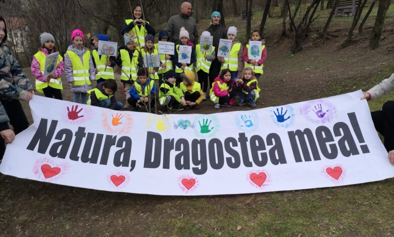 Activitatea a fost pregătită din timp de micii ecologiști cu pancarte și mesaje eco.