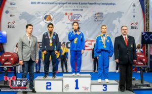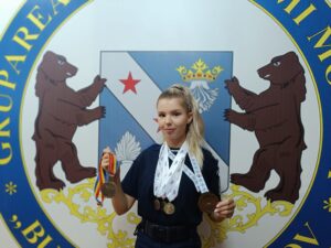 „Puternica noastră colegă a concurat cu peste 90 de femei, la diferite categorii specifice acestui sport și a reușit să urce pe podium la toate probele specifice categoriei ei de kilograme.