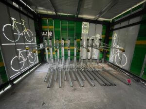 Primele trei parcări rezidențiale pentru biciclete. Parcările pentru biciclete vor fi amenajate sub forma unor containere de depozitare securizate, cu o capacitate de 50 de biciclete, de dimensiunea de 7 x 5 m, sau de 25 de biciclete, cu dimensiunea de 5×5 m, și o înălțime de 2,5 m. Accesul în parcare se va face printr-un sistem de acces securizat, cu yală electromagnetică și cititor de card. Parcările pentru biciclete vor funcționa independent energetic, fiind dotate cu panouri fotovoltaice. De asemenea, fiecare parcare va fi dotată cu camere de supraveghere video.