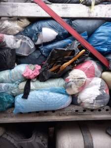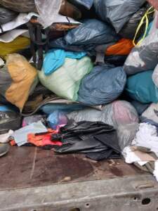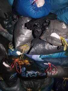 -hainele erau ambalate în saci de polietilenă destinați colectării deșeurilor menajere, fiind transportate împreună cu saci de cartofi