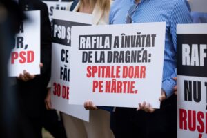 Parlamentari și membri ai USR, printre care și cei de la Brașov, au protestat marţi în faţa Ministerului Sănătăţii. Ei i-au cerut demisia ministrului Alexandru Rafila, iar Guvernului să nu renunţe la banii europeni pentru spitale. USR a depus, de asemenea, o cerere către Biroul Permanent al Camerei Deputaţilor pentru ca ministrul Sănătăţii să vină în Parlament şi să explice tăierea a 740 de milioane de euro din PNRR pentru noi spitale şi dotări.