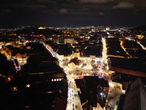 200.000 de leduri luminează bradul de Crăciun din Piața Sfatului. Alte 800.000 s-au aprins în centrul istoric al Brașovului, în cartierul Șchei și pe principalele bulevarde ale orașului.