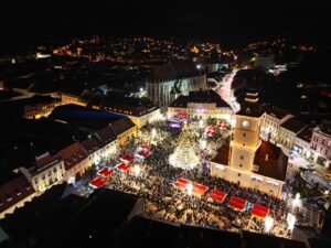 Tot astăzi, și-a deschis porțile și cel mai mare Târg de Crăciun pe care Brașovul l-a deschis până acum. Sunt 60 de căsuțe cu bunătăți, meșteșuguri și artizanat. Brașovenii și turiștii pot gusta plăcinte brașovene, coapte pe lespede, castane coapte, jumări și untură pe pâine, caltaboși și cârnați, ceai, vin și țuică fiartă, turtă dulce. De asemenea, vizitatorii târgului vor putea să cumpere decorațiuni și ornamente de Crăciun, șosete și mănuși de lână împletită și haine din lână împâslită.