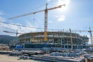 Conform reprezentanților firmei de construcții, până în acest moment s-au realizat lucrările la structura de rezistență, în proporție de 90%, inclusiv montarea prefabricatelor din beton pentru gradene. Se lucrează la turnarea stâlpilor de rezistență de la ultimul nivel, lucrările la acest nivel fiind realizate în proporție de 70%.